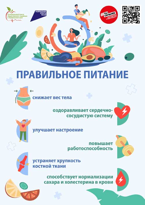 - Правильное питание это один из немногих факторов, который человек может контролировать самостоятельно, и он влияет не только на физическое, но и на психическое здоровье, работоспособность, продолжительность и качество жизни. Здоровое питание сегодня не мода, а необходимость!
