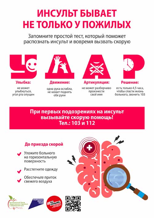 – Наверняка люди видели эту надпись на бортах машин скорой помощи. Это аббревиатура, где первые буквы означают симптомы инсульта. У – улыбка. Человек не может нормально улыбнуться, у него выходит это криво. Д – нарушение движения одной руки и ноги с одной стороны тела. А – артикуляция. Иными словами – нарушение речи. Р – решение. Если вы видите у кого-то три ранее перечисленных симптома, нужно в срочном порядке звонить 103, поскольку у нас есть всего четыре часа, чтобы доставить пациента в больницу и оказать ему помощь.